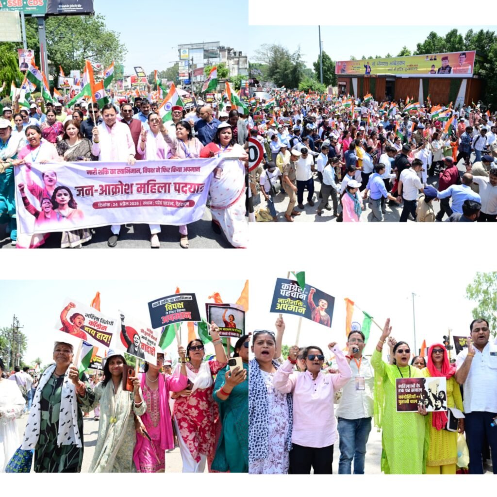 संबोधन के पश्चात मुख्यमंत्री पुष्कर सिंह धामी के नेतृत्व में पदयात्रा भी निकाली गई, जिसमें हजारों की संख्या में महिलाओं ने उत्साहपूर्वक भागीदारी की। इस दौरान नारी शक्ति वंदन अधिनियम के विरोध को लेकर कांग्रेस के खिलाफ जोरदार आक्रोश देखने को मिला और महिलाओं ने एक स्वर में कांग्रेस और उसके सहयोगी दलों की नीतियों का विरोध करते हुए नारी सम्मान के समर्थन में सशक्त संदेश दिया।